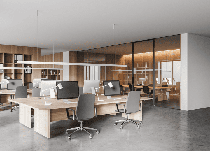 Lựa chọn mô hình thiết kế mở luôn được ưu tiên trong thiết kế nội thất văn phòng, với sự kết nối cao và hiệu quả mở rộng tầm nhìn.